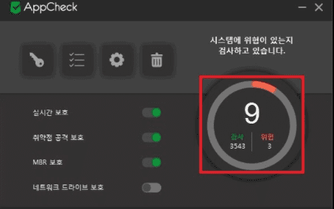 우선 지금 방법은 맘아이프로그램이 앱체크라는 프로그램에서 랜섬웨이의 공격을 방어하고자 만든 프로그램이지만 맘아이가 뚫린다고 합니다. 맘아이를 악성코드나 랜섬웨어로 취급한다는 것입니다. 이 프로그램은 맘아이를 꺼버릴 수도 있고 복원해서 사용에 대한 증거인멸이 가능하다는 점입니다. [1) 체크멀사의 앱체크 무료버전을 설치해줍니다.(체크멀 홈페이지 접속하면 다운받을 수 있습니다.), (2)설치후 실행합니다. 그리고 이미지의 체크 버튼을 클릭해줍니다, (3)검사를 시작하고 이 때 또한번 이미지버튼을 클릭해줍니다. 검사 시간이 오래걸린다면 몇개만 나올때 그냥 닫아주어도 됩니다. 그러나 컴퓨터 악성코드 검사이니 끝까지 해줍니다, (4) 이렇게 검사하면 맘아이프로그램이 삭제됩니다. 그리고 컴퓨터를 꼭 재부팅하시기 바랍니다. 그래야 맘아이가 완전히 삭제되기 때문입니다, (5)이제 원하는 것들을 다 실행하고 맘아이를 원상복구 시켜야 합니다. 아래 이미지에 나오는 목차 부분을 클릭해줍니다, (6)검역소에 잡혀있는 파일을 모두 드래그 한다음 선택한 것을 복원을 눌러줍니다. 그리고 컴퓨터를 재부팅 하면 맘아이는 다시 살아나게 됩니다.]