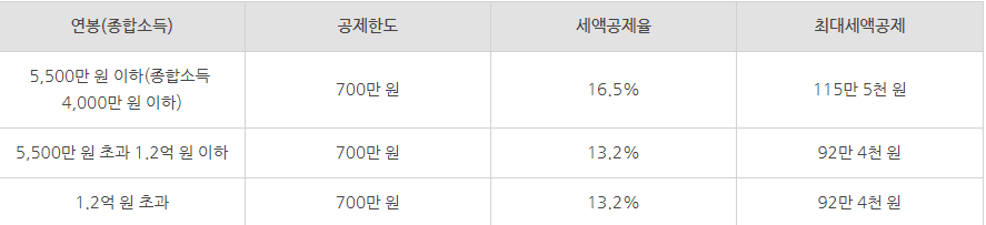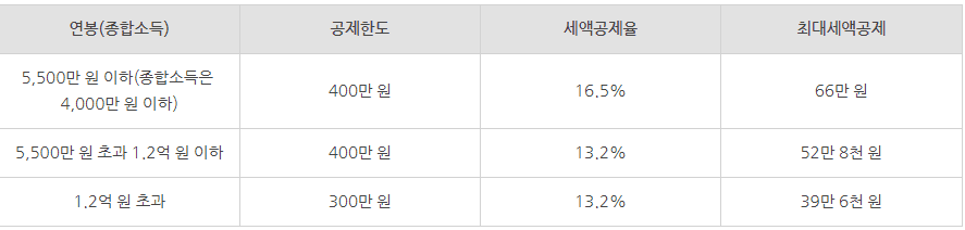 해당 상품을 가입할 수 있는 대상으로는 직장인, 자영업자, 공무원 등 모든 사람들이 가입이 가능하고 가입 후에는 최대 66만원까지 세액공제 해택을 받을 수 있다고 합니다. 그리고 납입기간은 최소 5년이고 세액공제 해택으로는 근로소득자, 자영업자, 종합과세자, 공무원 드엥 따라 다소 달라지는 부분이 있습니다. 세액공제로는 1년간 4백만원을 납입 중에 최대 66만원까지 받아 볼수 있는 부분입니다. 자세한 것은 이미지 표를 참고해주시기 바랍니다. 그리고 추가적 공제를 받길 원한다면 IRP 계좌를 함께 운영하는 방법이 있다고 합니다.