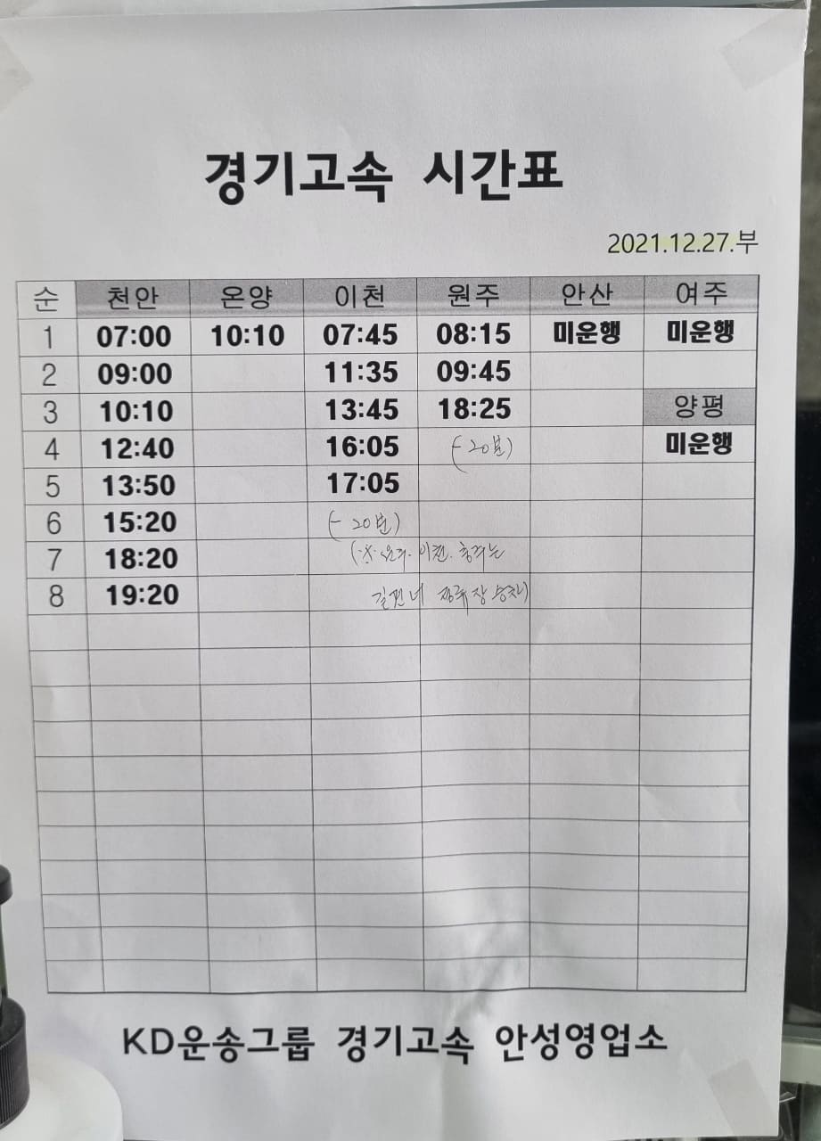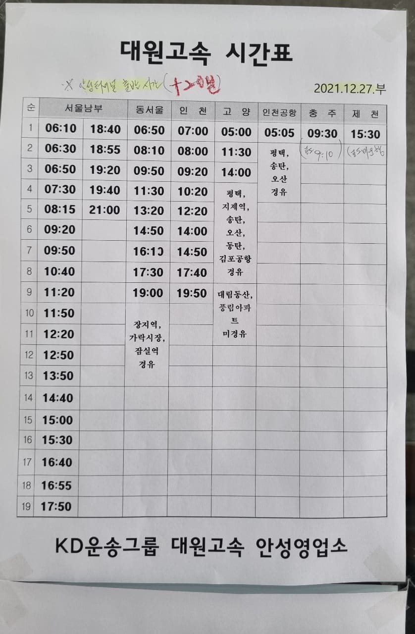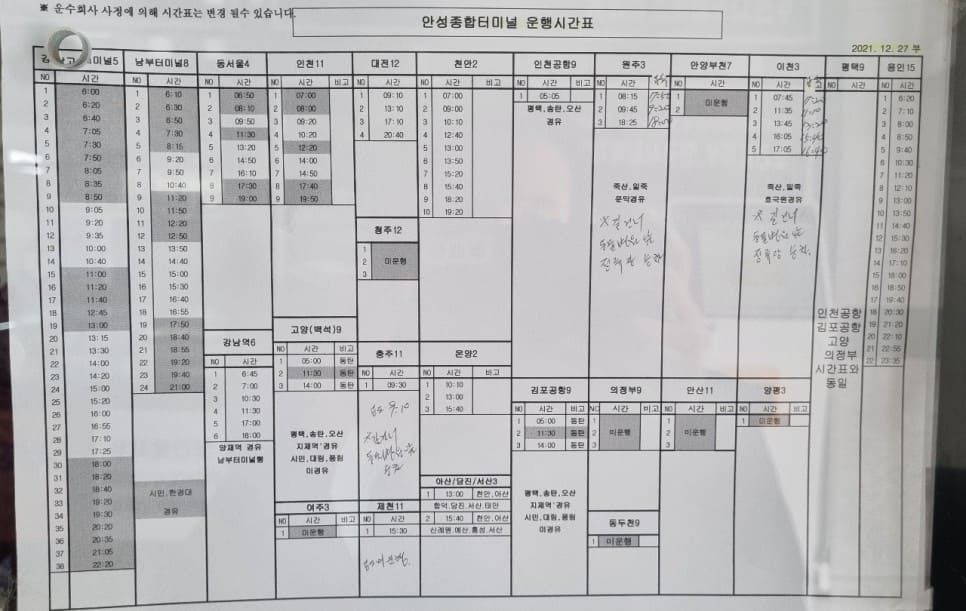 카테고리 없음 안성에서 시외버스 시간표 [시외버스터미널 시간표] by 이야기 블로그 2 2022. 3. 7. 반응형 2022년 안성시외버스터미널 시간표입니다. (공도시외버스터미널) 시간표 자세히 확인해 보시고 참고하셔서 시외버스터미널 이용하시기 바랍니다. 안성시외버스터미널 반응형 공유하기 게시글 관리 즐거운 금요일