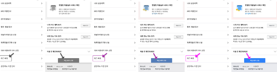 요즘 너무 높은 금리로 지출을 줄이기 위해서 또는 과소비를 줄이기 위하여 카드를 해지하는 분들이 꽤 많다고 합니다. 그래서 삼성카드를 이용하는 사람들 중에서 아직 해지를 못하신 분들 또는 탈회나 해지 이게 먼지 헷갈려 하시는 분들을 위해서 간단히 내용 정리를 해보겠습니다. 우선 삼성카드 해지방법으로는 앱으로 가능합니다. 삼성카드 앱으로 들어가시고 메뉴를 눌러 줍니다. 그리고 검색창에 해지를 검색합니다. 그럼 고객센터 > 상담안내/신청 이라는 메뉴가 나오는데 클릭 합니다. 그리고 나오는 메뉴에서 카드 해지를 클릭 합니다. 그럼 여러 내용들이 나오는데 읽어보셔도 되지만 바로 해지를 원하시면 아래로 쭉 내리시면 카드해지신청이 있고 그것을 클릭 그리고 해지를 하게 될 때 가스비, 아파트관리비 같은 정기 결제 관련된 것들을 미리 변경하시기 바랍니다. 여튼 해지사유를 적당한 것으로 선택 하고 다음을 눌러서 해지신청을 하시면 됩니다.