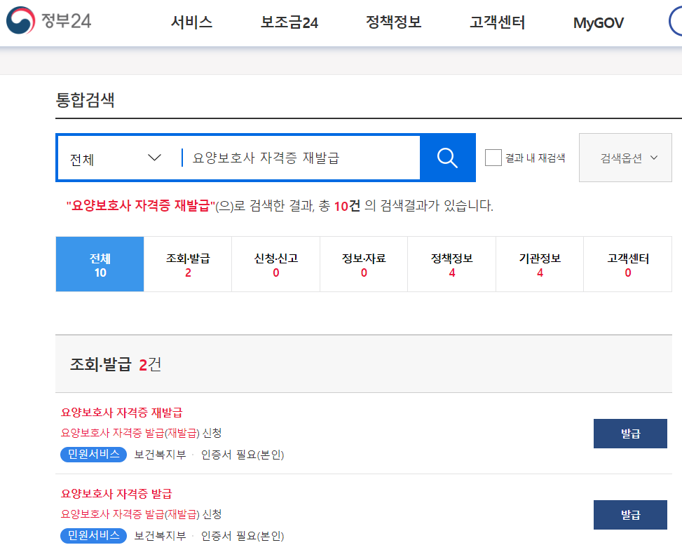 요양보호사 자격증 재발급 [온라인 신청방법]