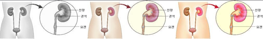 두번째식습관 문제의 원인 육류, 당류, 카페인, 염분 과 같은 것들을 많이 섭취하면 혈액 내 PH 농도가 산성화되면서 몸에서 이것들을 중화하기 위해서 칼슘을 가져다 쓰게 됩니다. 이때 칼슘 배설량이 증가해서 체내 소변이 농축되는데 옥살산염이 많아지면서 결석이 생기게 된다고 합니다. 세번째 가족력이 원인 요로결석도 가족력이 있다고 합니다. 그러니 혹시 가족중에 요로결석이 있던 사람이 있다면 더욱 철저하게 관리해주시기 바랍니다. / 요로결석 원인에서 [통풍, 비만, 고혈압, 당뇨병, 류마티스 관절염] 이 있는 사람들은 더욱 요로결석이 생길 수도 있는 사람이라고 합니다.