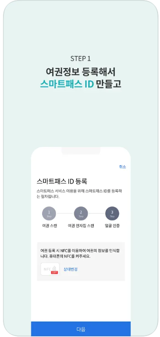스마트패스 등록은 핸드폰으로 등록할 수 있습니다. 그래서 스마트패스ID를 만들어야 하는데 그럴려면 전자여권과 얼굴인증을 해야 합니다. 등록은 당연히 모바일 앱을 다운로드 하고 나서 가능합니다.