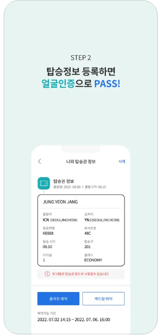 해당 서비스는 사용된지 그리 오래 되지 않았습니다. 작년 7월 정도? 인천공항 스마트패스로 안면인식 정보만으로 빠르고 간편하게 출국할 수 있는 서비스라고 보시면 됩니다. 즉 본인의 여권, 안면정보, 탑승권들을 미리 등록을 하면 출국장에서 여권과 항공권을 보여주지 않아도 얼굴만 카메라에 보여주고 바로 통과할 수 있는 서비스 입니다.