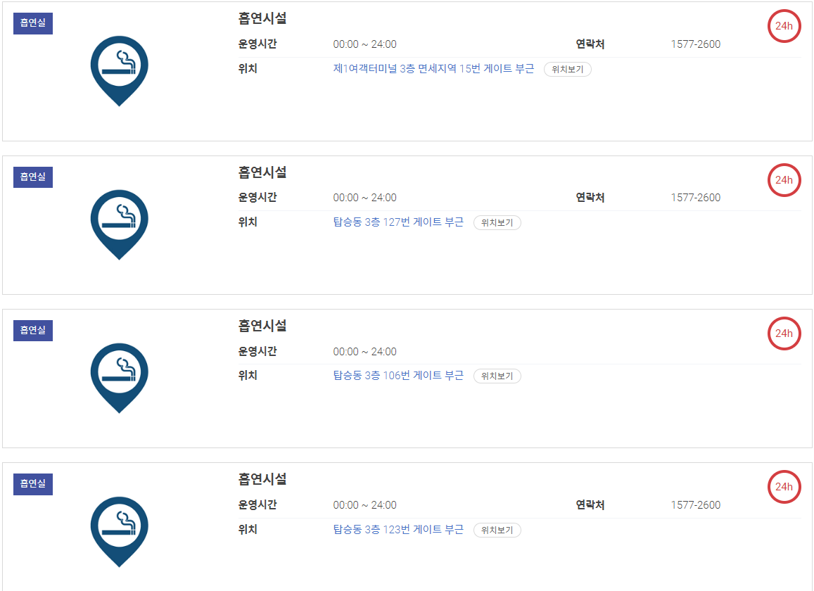 인천공항 1터미널 흡연실 및 흡연구역 안내