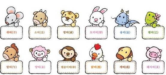 12띠순서로는 '자축인묘진사오미신유술해'입니다. 각 동물들의 한자로 12띠순서를 이야기 합니다. '쥐, 소, 호랑이, 토끼, 용, 뱀, 말, 양, 원숭이, 닭, 개, 돼지' 입니다. 십이간지를 왜울때 자축인묘진사오미신유술해는 이상하게 잘외워졌는데 이것 동물이랑 매칭이 안되서 외우기 어려웠던 기억이납니다.