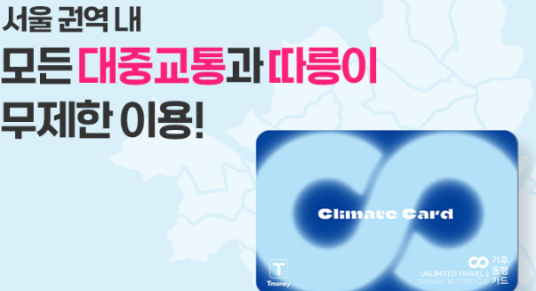 알뜰교통카드라는 것도 있습니다. 교통비를 절감하면서 대중교통을 이용하면서 탄소배출을 하자는 취지로 만들어진 카드였습니다. 그런데 이번에 기후동행카드라는 것이 나왔는데 교통정액권 카드같은것이라고 보시면 되는데 서울시에서만 사용이 가능하며 1회 요금 충전으로 30일동안 지하철, 버스, 따릉이 같은 것들을 무제한으로 이용할 수 있는 정기권이라고 보시면 됩니다.