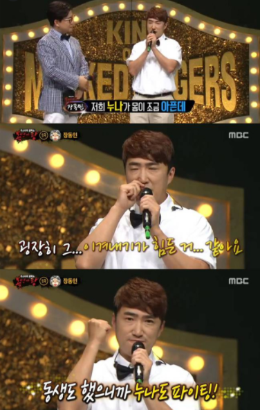 장동민은 가족에 대한 애정이 남달르다고 합니다. 장동민이 2019년 복면가왕에 출연하여 자신의 누나에 대한 이야기를 하였습니다. 자신이 노래를 못함에도 방송에 출연한 이유는 자신의 누나가 낫기 힘든 병에 걸려 힘들어하고 있는 상황에서 장동민 자신도 노래도 잘 못하는데 이렇게 힘내고 나와서 노래도 했다. 그러니 누나도 꼭 이겨내고 건강해졌으면 좋겠다면서 누나가 건강해지면 내가 번돈 누나가 다쓰라는 말을 하면 대중들의 눈시울을 붉게 물들였다고 합니다.