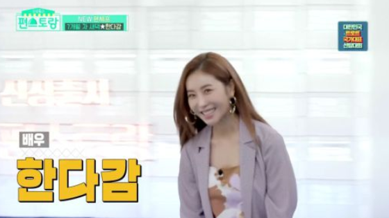 스페셜MC로 출연한 허경환은 한다감에게 "연애 결혼을 한 것이냐 물어봤고 한다감은 "그렇다"라고 답했다. 이에 다른 패널들은 "갑자기 그건 왜 물어보냐"라고 타박했고 허경환은 난감해하며 주변을 폭소케 했다. 배우 한은정이 한다감으로 예명을 바꾼 이유가 화제다.