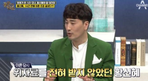 당시 황신혜는 전남편으로부터 위자료를 전혀 받지 않았지만 황신혜의 마음 씀씀이에 감동했던 시아버지가 아파트 한채를 사줬다는 이야기가 있습니다.