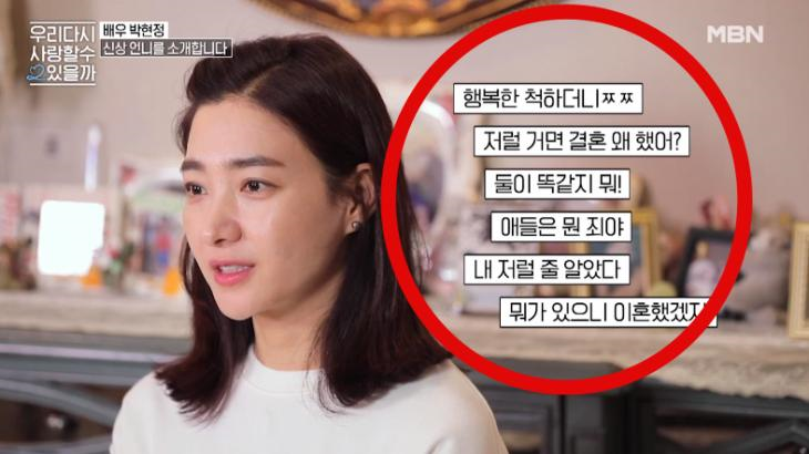 박현정 이혼 후 기사와 댓글들로 혹여 아이들이 상처를 받을까 싶어 "사람들이 말하는 것처럼 아빠가 나쁜 사람은 아니니 상처받지 마라", "댓글에 상처 받지 마라"라고 이야기하기도 했다고 하는데요.