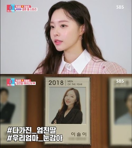 그이유로는 이솔이가 처음 박성광에게 관심은 없었지만 힘들던 시기에 이솔이가 개그맨 박성광에게 전화를 걸게 되었고 별다른 말을 하지 않았음에도 박성광이 '힘드냐, 힘들면 나한테 기대라' 라고 말하면서 박성광의 큰 마음을 보게 되면서 이사람 정말 큰사람이구나 라고 느꼇다고 속마음을 전하였습니다.