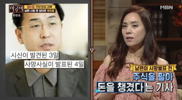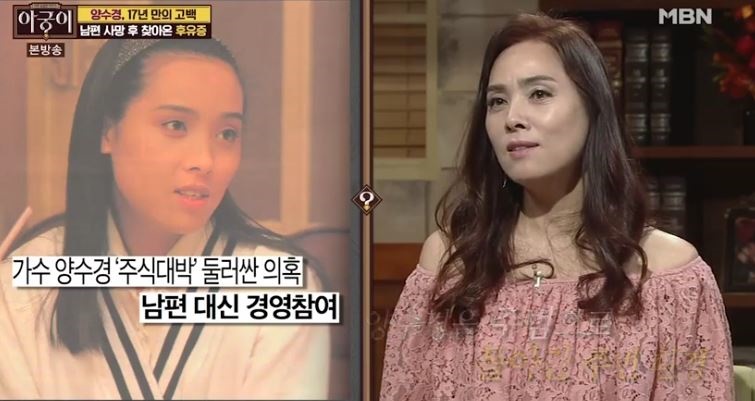 양수경은 남편의 죽음 뒤 남편 사망 당시 주식을 바로 팔았고, 또한 회사 경영에 직접 참여한다는 이러한 소문에 대해 "남편이 죽었는데 주식 팔고 있는 여자는 이 세상에 없을 것"이라며 강하게 부인했답니다. 양수경은 또 남편이 갑자기 세상을 떠난 뒤 입에 담지도 못할 악성 댓글에 시달려야 했던 사연도 소개했는데요, 그는 "처음 아이들을 유학 보내고 싶어서 보낸 게 아니라, 댓글에 아이들을 죽인다는 말이 너무 많았다"고 밝혔습니다.