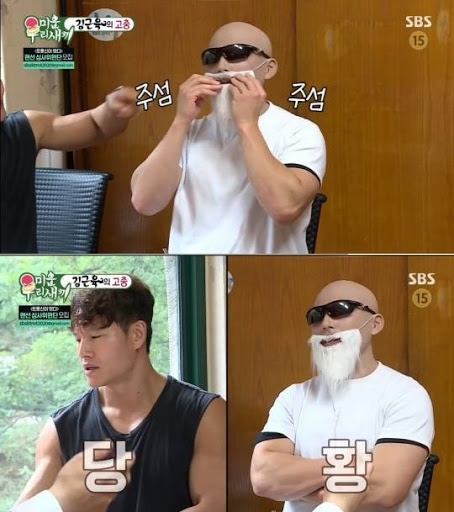 그 인물은 박준형, 김계란, 남창희 이렇게 세 남자가 토크배틀을 시작하였는데요. 이 떄 미운우리새끼 김계란씨가 김종국씨와 껴안으며 서로 몸을 더듬는 모습을 보여주었는데요. 이때 몸을 더듬는 행동이 서로의 근육 상태를 알기 위함이라고 하네요.