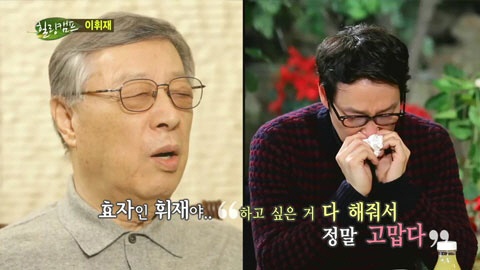 이휘재 아버지와의 사이가 매우 각별하다고 합니다. 해기사 출신의 외향 선원이셨다는 이휘재 아버지는 이휘재가 아주 어렸을 적에 매우 보수적이었다고 합니다. 그리고 굉장히 무서우신 분이셨다고 하네요.힐링캠프에서 이야기했던 바 전형적인 마도로스 셨다고 하는데요. 그러나 노년이 되시면서 건강이 악화 되시고 성격도 많이 유순해지셨다고 합니다. 그리고 이휘재의 슈퍼맨이 돌아왔다에 출연하셔서 손자사랑을 보여주시면서 많은 사람들이 활짝 웃게 만들었는데요.