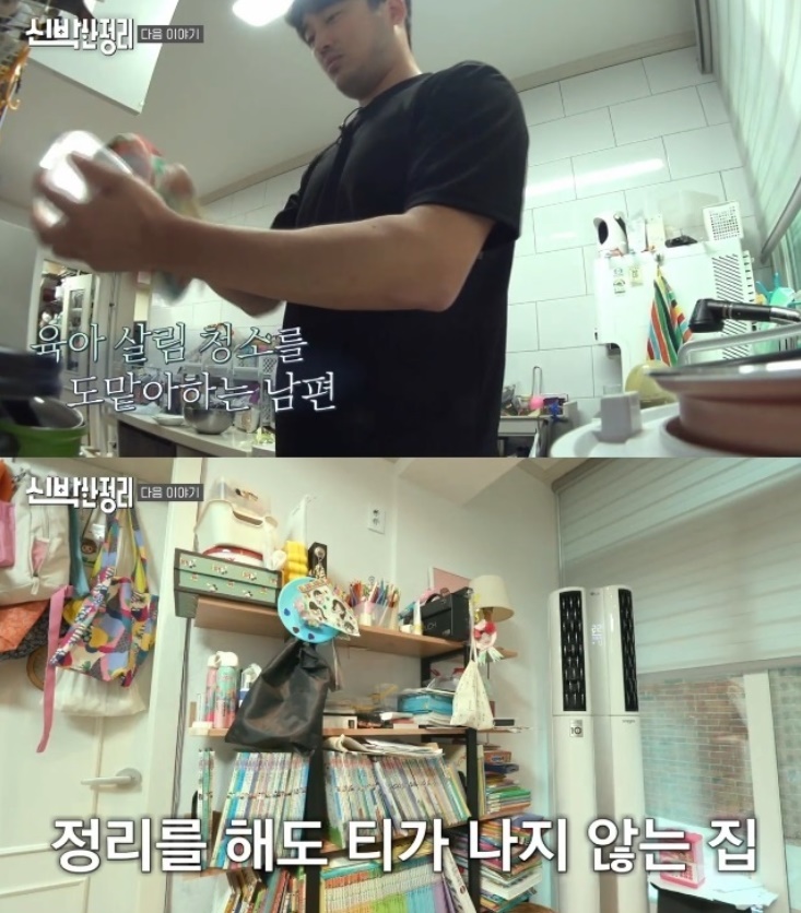 반면 현재 살림, 육아, 청소를 도맡아 하고 있다는 김미려 남편 정성윤. 남자로써 한계를 느낀다며 정리를 해도 티가 나지 않는다고 어떻게 해야 할지 모르겠다며 고민을 털어놓았습니다.