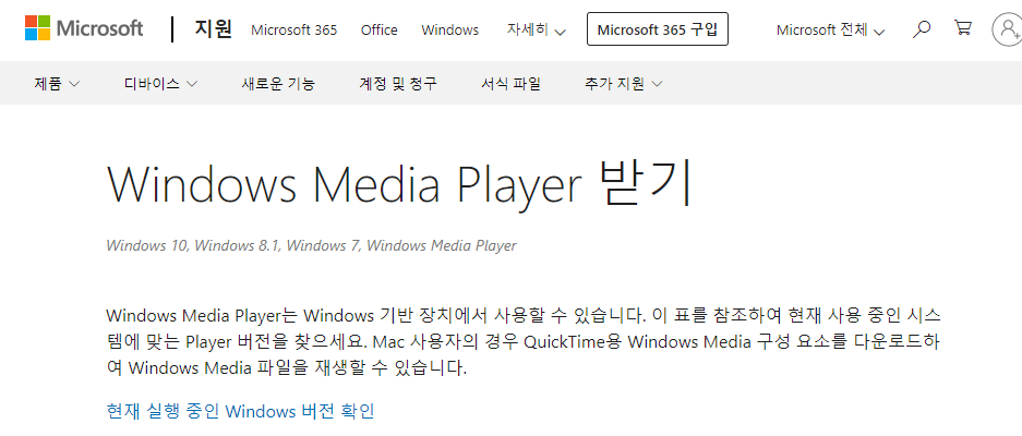 네이버, 다음, 구글에 마이크로소프트를 검색 후에  마이크로소프트 홈페이지에서 검색창을 누르시고 windows media player 이 단어를 검색해보시면 바로 첫번째에 windows media player 다운로드 페이지로 들어가시면 바로 윈도우 미디어 플레이어 다운로드 받을 수 있는 화면들이 나옵니다. 그중에서 윈도우10, 윈도우8, 윈도우7 등의 다운로드 파일이 나오는데요. 이것을 다운받으시구 다음과 같이 재설치 하여 사용하시면 됩니다.