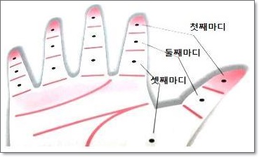 손가락 점으로는 엄지 두부분과 검지 그리고 중지, 약지, 새끼손가락(소지) 다섯개의 손가락으로 14가지의 점위치에 대한 부분을 순서대로 알아 보려 합니다. 여기서 손가락 마다 부르는 명칭들이 있는데요. 엄지손가락(무지, 벽지, 대지, 거지 ) / 집게손가락(검지,식지,인지,엽지,두지) / 가운데손가락(중지,장지) / 약손가락(약지, 무명지) / 새끼손가락(소지,계지,수소지)라고 불리고 있습니다.
