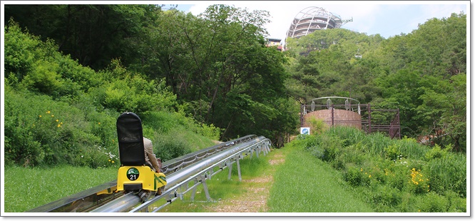 테마파크 전망대, 짚라인에서 즐기시고 알파인코스터로 가셔야 베스트 코스라고 할 수 있습니다. 그리고 이곳 역시 인기 많은 놀이기구인데요. 알파인코스터는 산의 지형을 거의 그대로 반영하여 자연환경의 훼손을 최소화한 모노레일입니다. 알파인코스터를 타면서 내려오게 되면 상쾌한 바람과 함께 남한강과 그 주변의 아름다음을 감상할 수 있습니다. 물론, 그 재미는 더 짜릿하답니다!