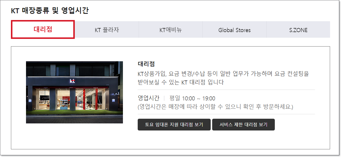 올레kt고객센터 매장은 각 대리점들은 어느지역이든지 있습니다. kt플라자는 신도림 ( 10:30 ~ 19:30 월 ~ 토 / 매월 둘째주, 넷째주 화요일 휴무 ) / 강남역 ( 09:00 ~ 18:00 월 ~ 토 ) / 광진 ( 09:00 ~ 18:00 월 ~ 금 ) / 광진(테크노마트 분점 ) 10:00 ~ 19:00 월 ~ 토 / 매월 둘째주, 넷째주 화요일 휴무 ) 등의 매장들이 있습니다.