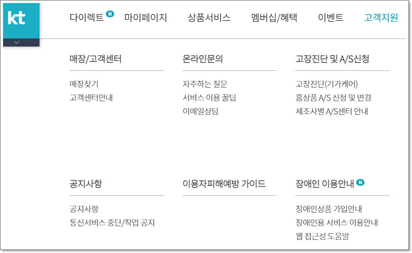 kt 홈페이지로 들어가보시면 모바일, 인터넷 등등 다양한 서비스 정보를 확인하실 수 있습니다 .그리고 다양한 문제로 고객센터에 문의를 하시는 분들 중에서 이용시간이 지나버려 서비스를 못받는 분들을 위하여 해당 질문들이 있는 것으로 알고 있습니다. 여기서는 번호변경, 소액결제차단 한도설정, 휴대폰 분실/파손 이 외에도 인터넷, tv, 집전화, 인터넷전화 등 다양한 서비스관련의 질문 유형들이 있습니다.