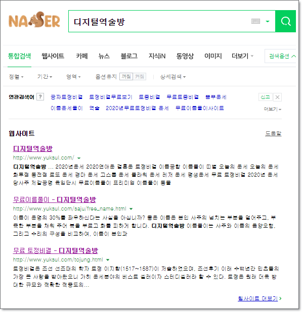 일단 네이버 검색창에 '디지털역술방'을 검색하시면 무료이름풀이, 무료 토정비결 디지털역술방 사이트가 나옵니다. 일단 이 사이트는 띠별오늘운세, 이름궁합, 혈액형궁합, 무료이름풀이, 토정비결 등은 무료로 진행이 가능합니다. 그리고 어떤 것은 좀더 디테일하게 보기 위해서는 2 ~ 3천원 돈의 비용을 지출하면 좀더 디테일하게 보실 수 있습니다.