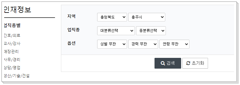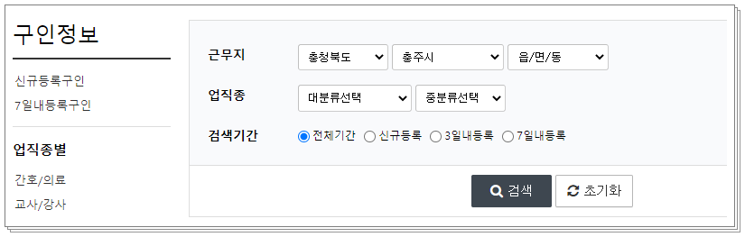 근무지는 충정북도에 해당하는 모든 시/군/구 동 등에서 구하는 일자리들이 올라오고 있습니다. 그리고 중장년, 주부, 대학생등 연령별로 인재를 구하고 있구요.  혹시나 홈페이지에서 구직을 구하기 어렵거나 불편하신 분들은 옛날방식인 충주교차로 구인구직 신문광고를 통하여 구인구직을 하셔도 됩니다.