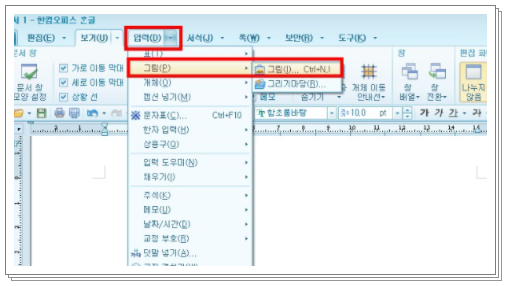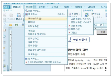 4. 한글 프로그램의 상단 카테고리에 파일, 편집, 보기, 입력 등 실행메뉴들이 있습니다. 그중에서 '보기' 메뉴를 클릭하시고 그림 항목에 체크를 해주시면 됩니다.