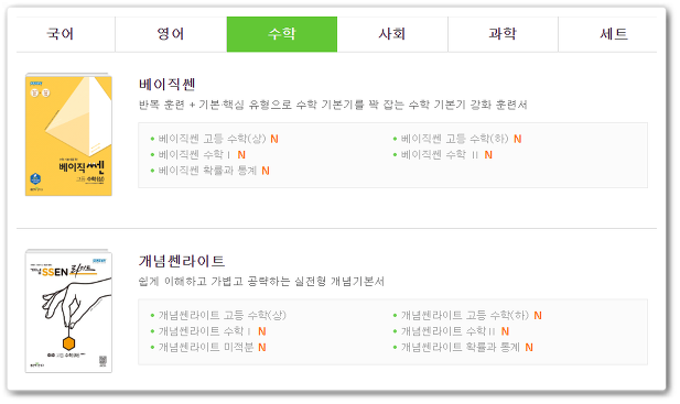 그것을 선택하시면 여러분들이 찾는 라이트쎈 고등수학 상 답지는 물론 베이직센이나 개념센라이트 등 다양한 교재들에 대한 정보를 찾을수 있습니다. 하단부분을 살펴보시면 우리가 원하는 것을 찾을수 있습니다.