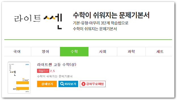 라이트쎈 고등수학 상 답지 다운 및 이용방법
