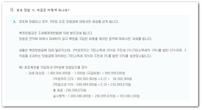 로또 2등 당첨금 수령 및 로또 당첨금 세금은? Q & A