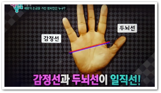 참고로, 다운 증후군과 같은 발달장애 질병을 앓고 있는 분들에게도 자주 볼 수 있는 이 손금은 매우 희귀한 손금으로 알려져 있습니다. 일자손금을 가진 사람들의 특징 중 하나는, 애정을 표현하는 방법이 서툴기 때문에 이성운이 약한 손금이라고 합니다.