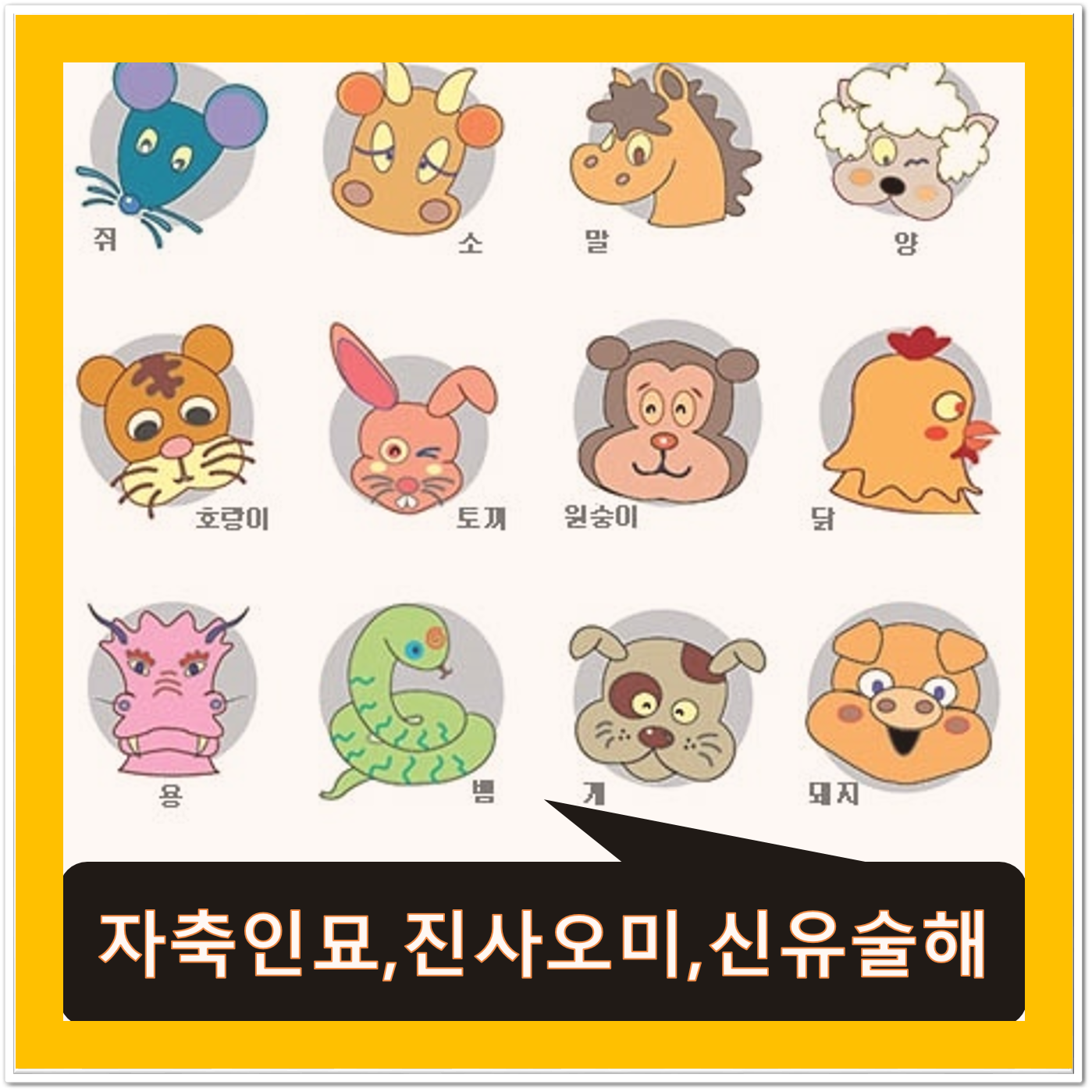 12가지 띠순서 '동물종류, 한자, 성격' 자축인묘 진사오미 신유술해 뜻