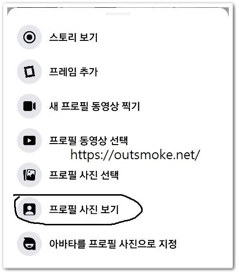 여기서 화면 맨 아래쪽에 있는 프로필 사진보기 항목을 눌러주신 다음에 사진보기 화면으로 이동하시면 오른쪽 위에 보이시는 더보기 아이콘이 있습니다 그것을 눌러주셔야 합니다.