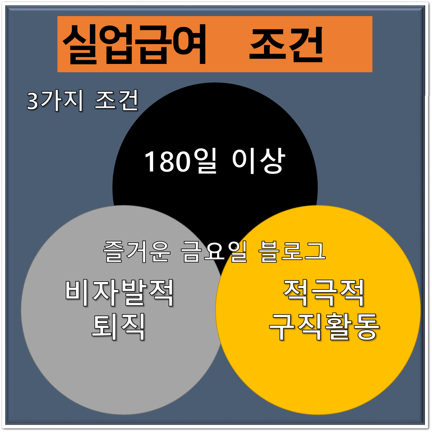 실업급여 조건은 피보험 단위기간 재취업에 대한 노력 등의 3가지 조건을 만족 시켜야 한다. 실업급여 지급기간 최소 120일 최대 270일 이다. 실업급여 지급액 및 지급일 퇴사전 금액의 평균임금 60%를 받는다. 신청일로 2주후 대기시간을 제회한 8일분을 우선 받는다.