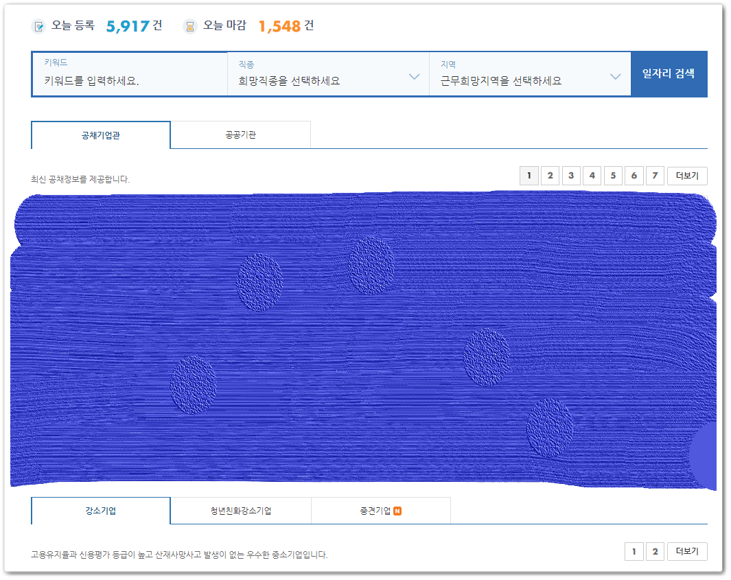 워크넷 채용정보에서는 전국 노동부에 신고되어있는 업체들중 공신력있는 업체들로 채용정보를 올리고 있습니다. 채용정보에 보시면 공채기업관, 공공기관의 업체들로 나뉘어져서 공채진행중인 업체들을 확인하실 수 있으며, 공공기관 업체들로 확인하실 수 있습니다. 그중에서 기업의 크기로는 강소기업 -> 청년친화강소기업 -> 중견기업 이렇게 나뉘어져 있으며 중소기업 아래로는 워크넷구인구직에 올라오지 않는다는점 참고해주시기 바랍니다.