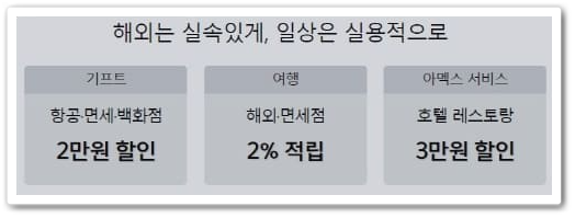 또 자산규모로만 197조 8천억원 이상의 자산을 보유하고 있습니다. 그렇기에 카드사에서도 가희 범접하기 어려운 카드사라고 할 수 있습니다. 이런 카드사에서 취급하는 카드종류들 중 블랙카드는 상위 1%로만 가질 수 있으며, 플래티넘, 골드카드도 있으나 블랙카드와는 절대 범접이 불가능하다고 할 수 있습니다.