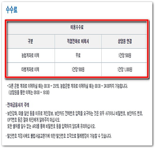- 농협 텔레뱅킹 수수료
