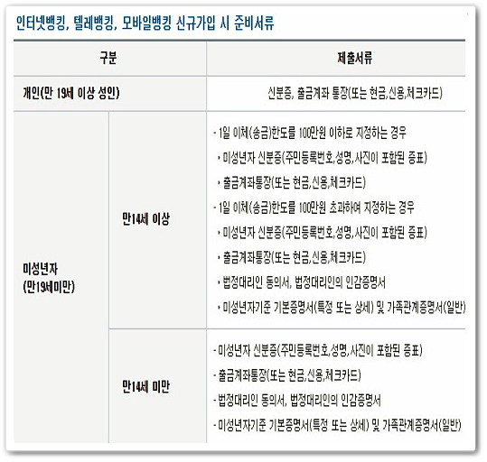 신청시 개인은 신분증, 출근계좌 통장등을 지참하여야 하며, 신청인이 미성년자라면 법정대리인을 대리하여 신청할 수 있습니다. 또 법정대리인은 가족관계증명서, 미성년자 기본증명서와 함께 법정대리인 신분증을 제출해야 신청이 가능 합니다.