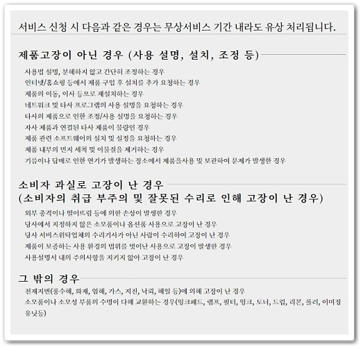 수비리에서 유상 수리시 부품비를 제외한 기술료를 말하고 있습니다. 그리고 수리할 때 소요되는 시간 그리고 수리 난이도에 따라서 기준 공수에 의하여 비용이 산정되게 됩니다. 기술공수에서는 0 ~ 10 단위로 나뉘게 되어있으며, 서비스 핸드북 기준 공수표를 기준으로 말하고 있습니다. 또 부품비에서는 제품 수리시에 교체 할 때만 소요되는 비용이며, 불량 부품을 회수해가는 조건등의 비용이라고 할 수 있습니다.