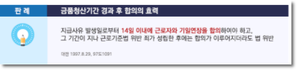 그래서 당사자간 합의로 인하여 기간이 연장하는 경우에는 구두상의 합의말고 절대적으로 서면 합의 등이 꼭 필요합니다. 지불각서 같은 서류상으로 지장까지 남기는 합의서가 필요합니다. 친하다고 오래 일했다고 고용주를 믿는다고 하는 형식은 절대 그 후에 일어나는 불이익에서 피해를 보는것은 본인의 문제가 되기 때문입니다. (녹음등의 파일을 준비해도 됩니다.) 퇴직 후 14일 이내 임금이 지급 안된다면 고용노동부 홈페이지를 통하여 임금체불 신고 및 알바비 미지급 신고등을 하신다거나 사업장에 위치되어있는 관할 지청등에 방문하여 오프라인으로 신고처리를 하시면 접수가 가능합니다.
