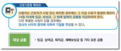 알바비 미지급에 대하여 이야기 하기 전에 임금체불이란 것은 근로기준법에 해당되는 시간 및 일을 하였으나 임금의 지급이 연체 또는 지체된 임금을 지급일이 지낫음에도 특별한 이유나 사유가 없이 넘겨서 체불한 것을 체불임금 또는 임금체불이라고 이야기 합니다. 일단 근로기준법의 제36조에 따르다면 고용주는 근로자가 일을 그만두게 되는 경우에 14일 이내에 임금 및 보상금 등의 금품을 청산하여야 합니다. 그러나 고용주가 특별한 사정이나 문제가 있는 경우에는 당사자간의 합의에 따라서 기간을 연장할 수 있는 부분입니다.