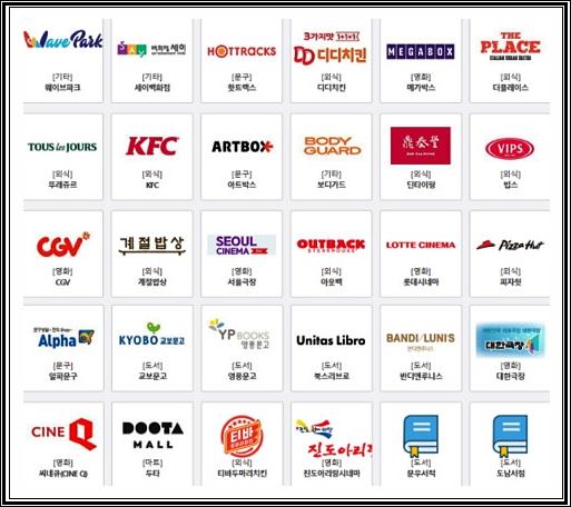 영화관, 외식업체 등에서도 사용이 가능합니다. 핫트랙스, cgv, 빕스, 계절밥상, 아웃백, 롯데시네마, 피자헛, 씨네큐, 문구점 등 다양한 곳에서도 사용이 가능합니다. 단 사용전에 도서문화상품권 사용처 가맹점들을 확실하게 파악하고 방문하는 것이 좋을듯 합니다.