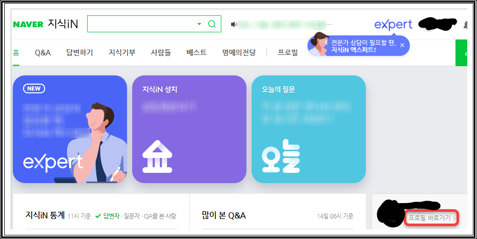 (1)프로필 바로가기로 지식인 질문 비공개 하는 방법
