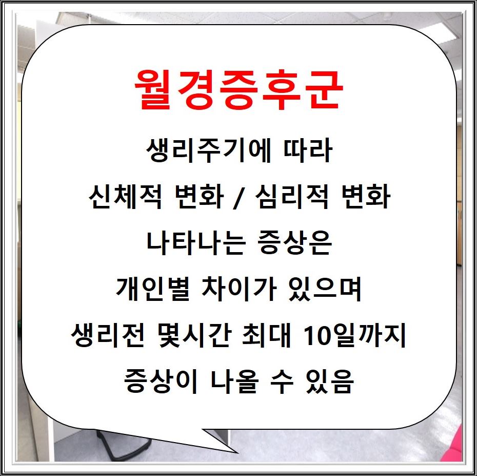 월경전 증후군은 생리가 시작하기 전에 시작되어 몇시간안에 사라지는 신체 / 심리적 증상이라고 할 수 있습니다. 생리전에 불쾌해지는 장애등이 있는데 이것은 개인별 차이가 있으며 그 강도 또한 차이가 심하다고 할 수 있습니다. 증상이 매우 심한사람은 하루종일 고통을 느끼기도 하며 또 어떤 사람은 온것 같지도 않게 바로 지나 가기도 합니다. 이런 증상으로 여성의 생리전 증상들은 사회활동에도 큰 영향을 끼치기도 합니다.