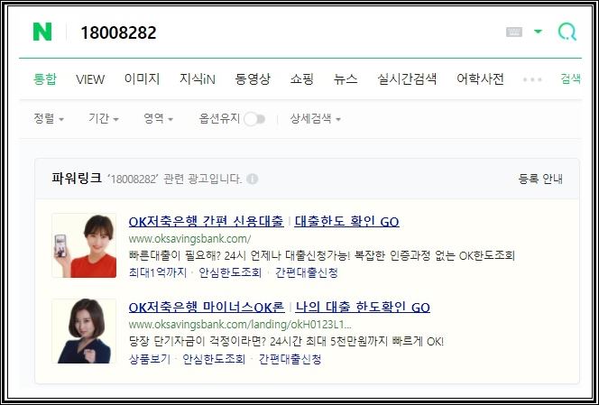 그중에서 18008282 전화에 대해서도 궁금해 하시는 분들이 많습니다. 18008282 전화로 보이스피싱과 연결된 부분은 없다는 것을 말씀드립니다. 그럼 18008282 번호의 정체는 바로 OK저축은행의 신용대출 고객센터 번호 입니다. 해당 번호로 전화가 오는 이유는 일단 OK저축은행 홈페이지 또는 어플 고객센터 등을 통하여 한도조회를 했다던지 대출 신청등으로 업무 문의를 했다던지 아주 조금의 관련이 있는 전화등 문의를 했다면 18008282 번호로 부터 전화가 올 수도 있습니다.