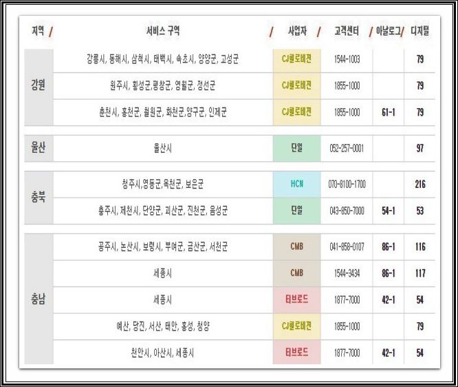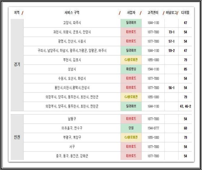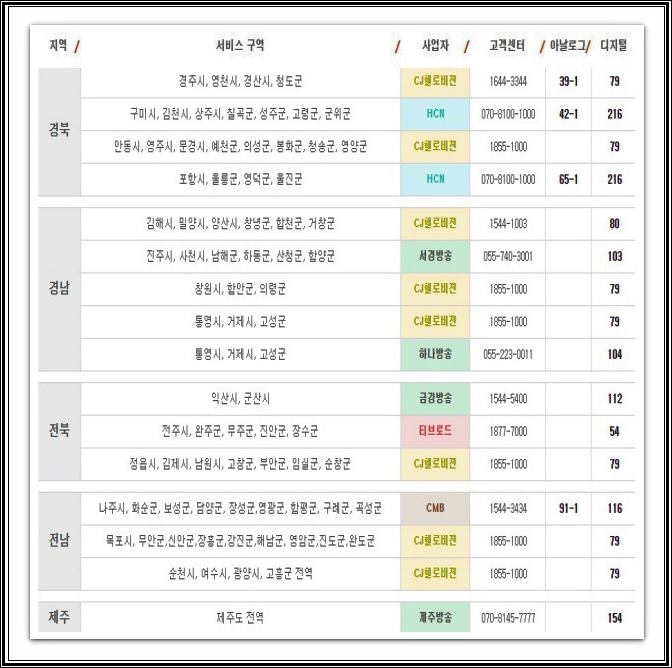 이외의 지역으로 tv조선2 채널번호를 서비스 중인 지역별은 강원, 울산, 충북, 충남, 경북, 경남, 전북, 전남, 제주 지역에서 채널들을 시청이 가능합니다. 채널 번호로는 이미지로 확인 시켜 드리도록 하겠습니다.