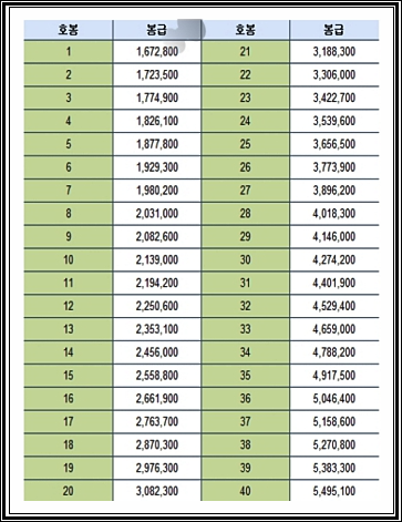 2021 중등교사 호봉표 및 유치원/초등학교/중.고등학교 교원등의 봉급표 정보