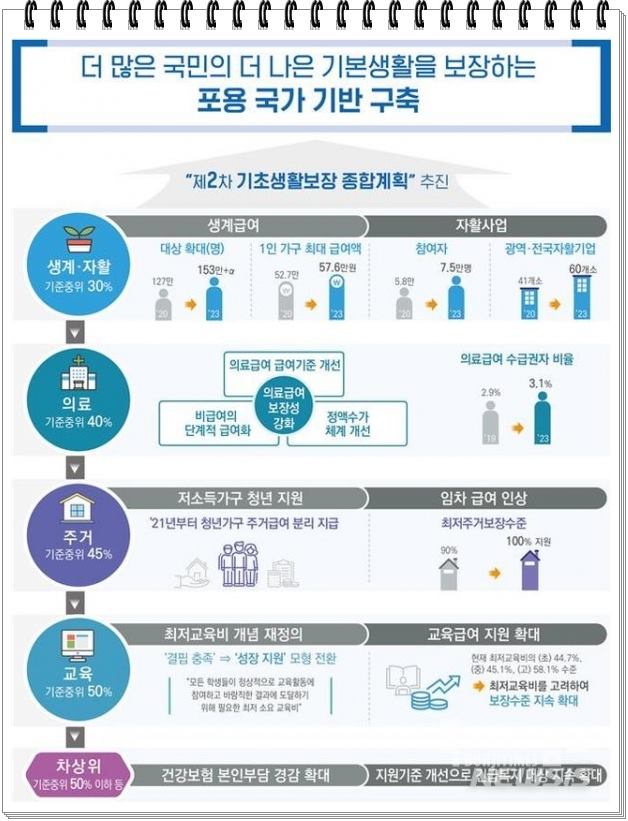 기초생활수급자는 중위소득의 30~50%에 못미치는 사람들이라고 할 수 있습니다. 이런 기초생활수급자로 선정이 되게 되면 생계급여와 의료급여, 주거급여, 교육급여 등의 지원을 받을 수 있게 되는데요. 기준 중위소득으로는 급여별 선정기준, 생계급여 지급액 결정 기준, 부양의무자 부양능력 판정기준과 각종 복지 사업 선정기준으로 활용되고 있습니다. 그리고 소득 정도에 따라서는 수급비 종류 그리고 금액이 달라지게 된다고 합니다.