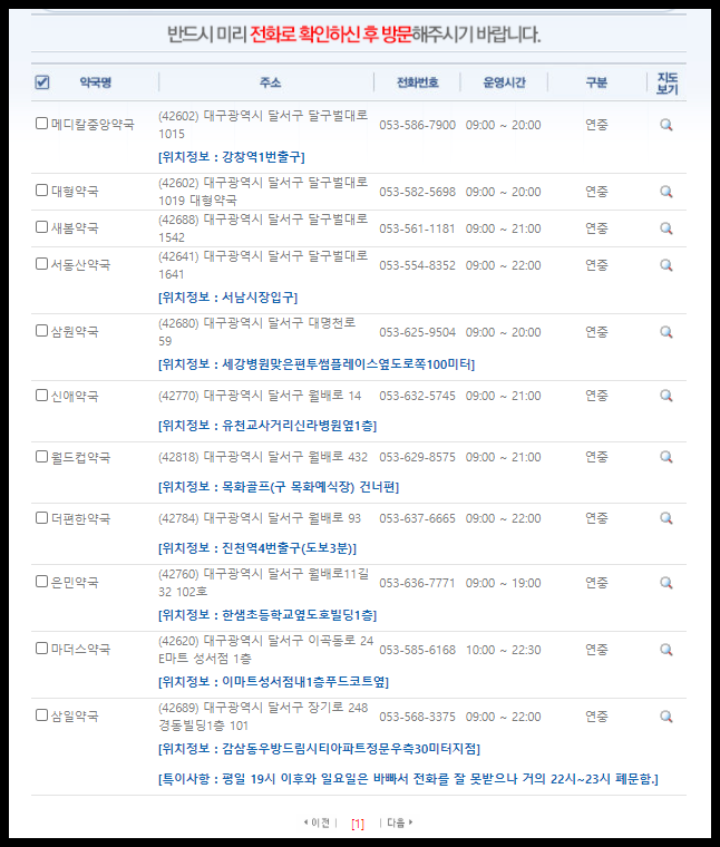 전국구 및 대구 24시간 약국 어디? ( 휴일지킴이약국, 심야 약국 )